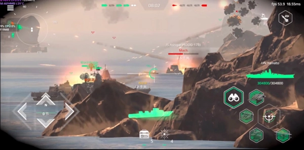 4、在对战过程中,我们要借助左侧摇杆来操控战舰的移动方向与航行速度。