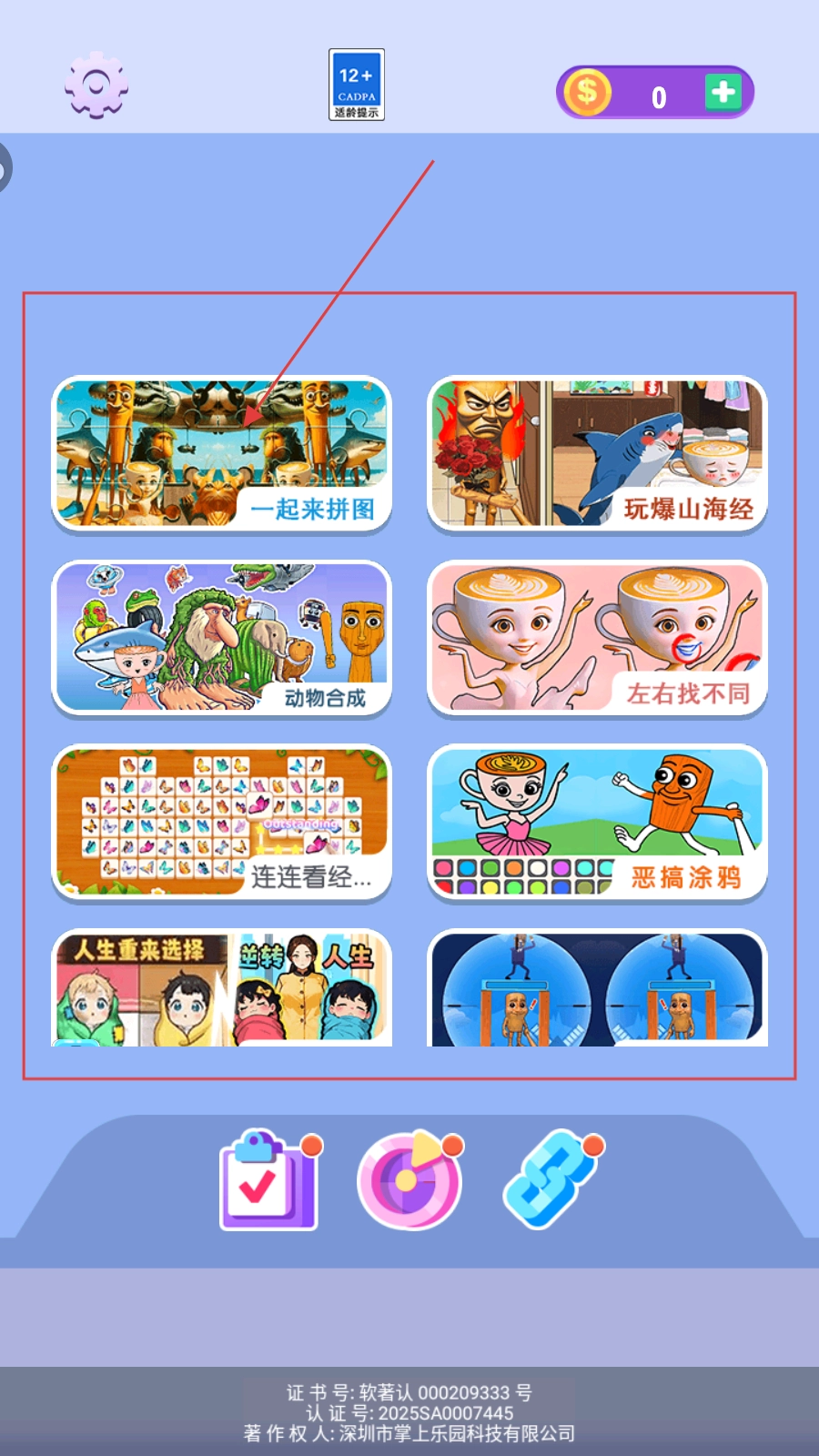1. 在主界面选择【一起来拼图】,进入第一关,做好拼装彩色碎片的准备。