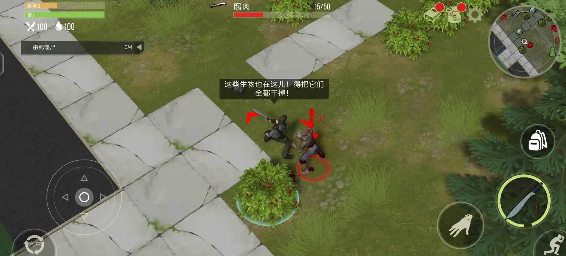 3. 当玩家遭遇丧尸时,能够通过点击右侧的攻击按钮对丧尸展开攻击。