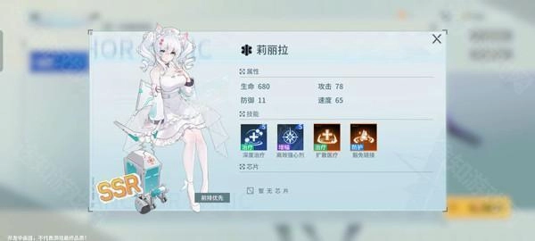SSR薇尔朵拉的技能设定颇为尴尬。其提供护盾的技能,并非优先为前排角色套盾,而是以血量最少为判定标准。要知道,坦克角色基础血量本就很高,即便掉血后,血量仍可能多于后排,这就极易导致套盾失误。另外,小技能的奶量与自身攻击力并无关联,大招机制看似花哨,实际却不太实用。虽说在竞技场或许能发挥出意想不到的效果,但相比指挥官的复活技能,其滥用性还是小很多。