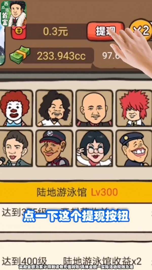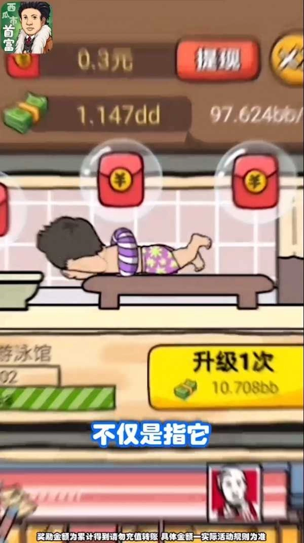 《西瓜市首富红包版》是一款充满精彩趣味的模拟经营游戏。在游戏中,玩家将化身为创业者,凭借手中的初始资金,对不同项目展开投资,同时招募优秀员工,让他们管理各个岗位,从而赚取越来越多的收益,最终成为这条街的首富。感兴趣的小伙伴别再犹豫啦,快来加入吧!