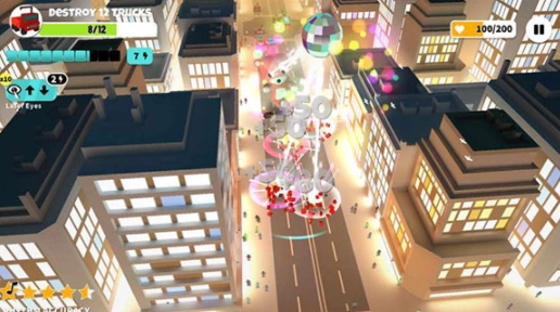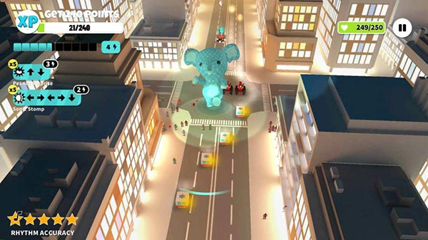 巨型舞蹈公仔是一款充满卡通风格的趣味休闲闯关游戏。在游戏里,玩家要操控一只巨型毛绒玩具,在城市街头一边舞蹈一边搞破坏。过程中,你得跟着音乐节奏舞动,依靠舞蹈步伐躲避各种攻击,持续在四周移动,把那些看起来无比渺小的拦路车辆统统摧毁,从而顺利抵达终点,完成关卡挑战。