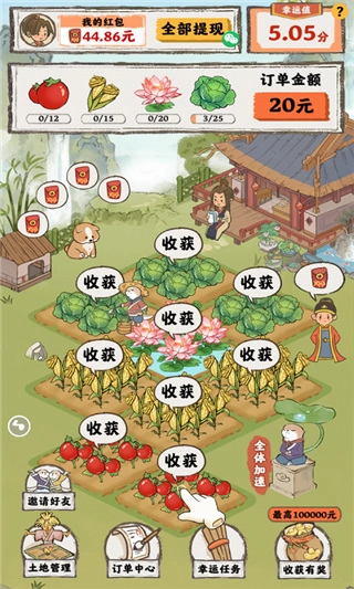 桃源人家红包版正版,这是一款主打休闲娱乐的模拟经营类游戏。在游戏里,玩家能够自由进行升级操作,从而解锁各式各样的道具。于仿若世外桃源的场景中,体验种菜与丰收的乐趣。而且,只要完成相应任务,就能获取奖励。整体玩法简单,休闲感十足。