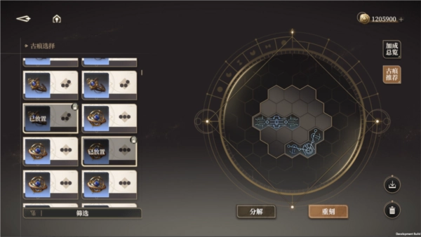 4、古痕生成时会附带1条随机属性,玩家能够选取名字相同的古痕进行合并(合并上限为2次),合并后的古痕可通过反向拆解加以调整。