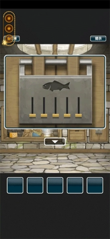 3、在右侧找到柜子,按照鱼骨的上下位置关系打开柜子,从而获取钓鱼竿。