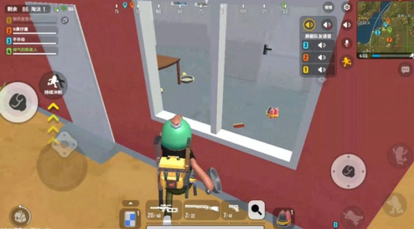 前后左右的走、跳、蹲、趴以及开枪操作就不赘述了。blob.png红圈所代表的功能为:切换视角,此功能用于在角色保持静止状态时查看后方或侧方。