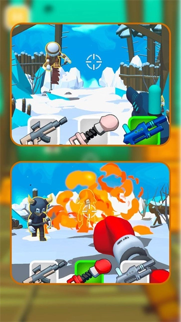 在游戏中,玩家以第一人称视角直面敌人。只需在屏幕上移动手指滑动,就能实现瞄准敌人的操作。当准备就绪,点击屏幕上的射击按钮,武器便会发射。需要注意的是,各类武器的射击方式以及弹道轨迹各有差异,玩家得依据实际战况灵活调整。而敌人会主动朝玩家所在方向移动,一旦被敌人靠近,游戏即判定失败。