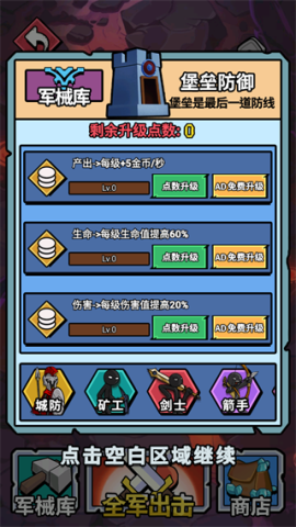 3、于游戏的军械库内,玩家能够自主对堡垒防御进行升级,堡垒作为最后的防线至关重要。此外,商店中还提供了丰富多样的技能可供购买。