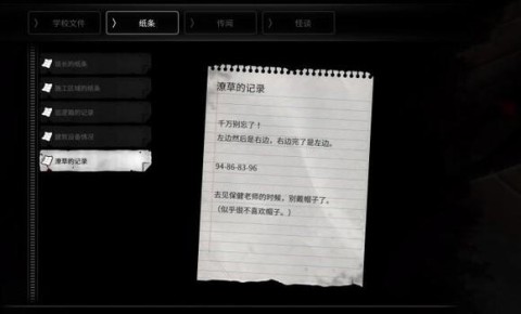 1游戏开启之际,主角现身于主楼1的大厅入口处,依照提示朝着左侧的2年6班进发,途中收集文件、校刊(充当地图)以及豆奶(具有补血功效的道具)。