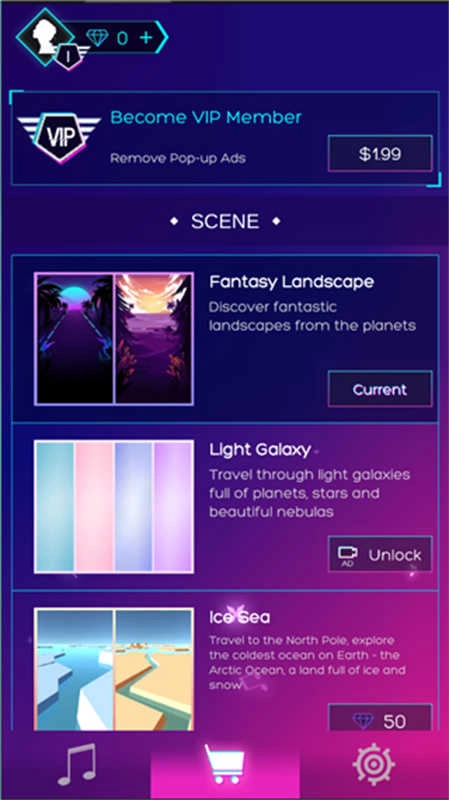 3、挑选风格各异的音乐,领略富有冲击力的节奏,伴随音乐开启一场又一场的冒险。