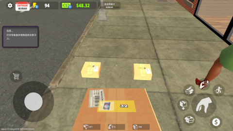 1、通过左侧的摇杆来操控角色移动,右侧则是各类其他功能键,无论是拆盒还是丢弃物品都极为轻松。