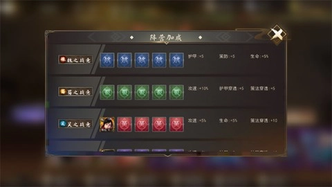 各个阵营所具备的加成效果不尽相同,通过合理搭配,可全方位提升自身属性,从而在战斗中增添优势。