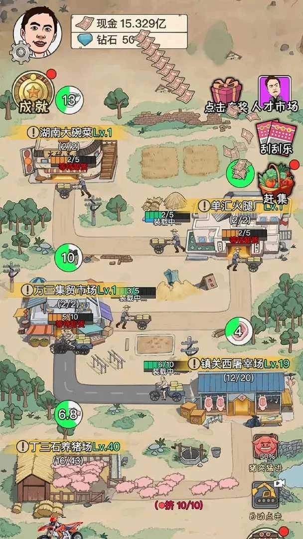 致富大亨版,是一款模拟经营类小游戏去除广告后的版本。该游戏围绕经典的逆袭题材展开,能让玩家亲身感受人生的跌宕起伏与重重挑战。在游戏里,玩家会重返养猪场,开启新一轮的逆袭征程,目标是最终荣登世界首富之位。玩家不仅能够经营属于自己的产业链,借此获取更多资产,还能用积累的财富为身患重病的奶奶医治。