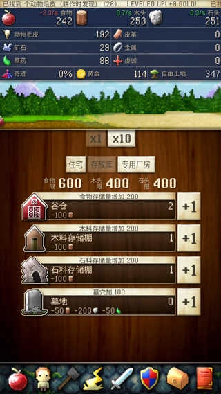 这是一款点击放置类型的策略游戏,整体采用传统经典的像素风格。从简约的色彩搭配,到极具策略性的游戏战争玩法,都独具特色。玩家在游戏里,通过点击操作收集食物、木头和石头,以此扩充自己的库存。利用这些收集到的素材,能够建造更多住宅。住宅的建成会为玩家提供人员资源,玩家可雇佣工人,并合理分配他们去收集基础资源物质。在这里玩游戏,需要考虑到人口招募会消耗一定数量的食物。要是在收集过程中,消耗的食物量大于获取量,那么对玩家而言,不仅资源会逐渐减少,就连人员数量也会跟着降低。 此外,在《文明创始者》这款游戏中,除了食物、木头和石头这些基础资源外,还有动物毛皮、矿石、草药等各类更高级的资源物质。而且这些资源还能进一步转化为成品皮革、金币等。与此同时,游戏内设有各种特色建筑,不同建筑具备不同功能。随着资源不断积累,玩家还可以组建自己的军队,开拓领地,并且解锁更多全新科技与能力。