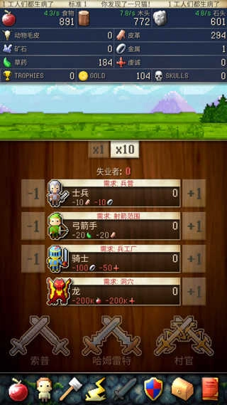 目前在游戏里,我们的军队共有四个军种,分别为弓箭手、士兵、骑士以及龙。在这四种兵种之中,龙堪称最强,其次依次是骑士、士兵和弓箭手。军队实力的强弱,与我们领地的发展和存亡息息相关,因此,切勿盲目出击。