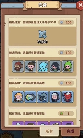 幸运祈愿:领主大人能够通过消耗对应数量的幸运币,策略性地选择召唤蓝、紫或金品质的英雄。英雄品质越高,所需幸运币越多,召唤成功的概率也就越低。