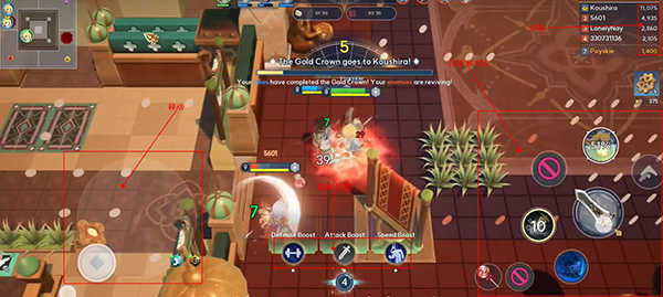 当玩家出门参与对战后,能够借助屏幕左边的轮盘来操控英雄移动,利用屏幕右边的图标控制英雄释放技能以及进行普通攻击。