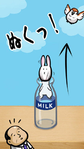 2. 助力小白兔顺利从牛奶瓶中脱身。