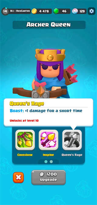 她1级的技能名称是“crossbow”。当能量条蓄满后,女皇会进入自身狂暴状态,攻击速度得到提升,且在短时间内每次普通攻击都能命中三名敌人。