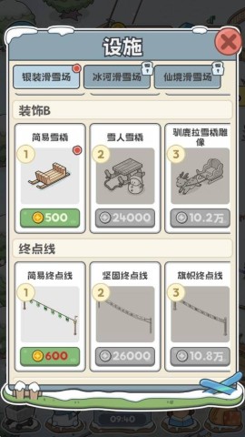 5、在完成各项任务的过程中,持续解锁全新的设施与服务,进而提升滑雪场的综合竞争力。
