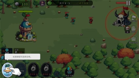 5、于左下角,你会瞧见召唤按钮,长按便能迅速唤出强大的鸭子英雄,给予敌人致命一击!