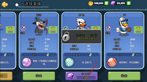 4、完成解锁操作后,你便能随意更换,同时能用金币来升级你的英雄,增强其能力。