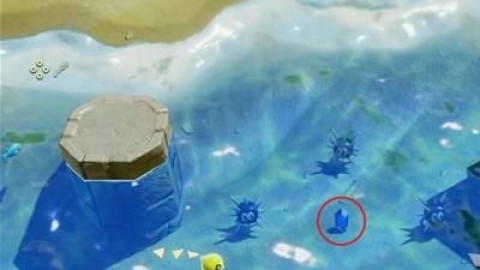在水下搜寻完毕后,径直贴着水面返回陆地,靠近石头,然后点击A键将石头扔出,以此击杀怪物。