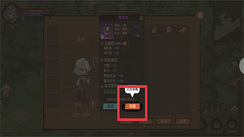 4、拾取到的装备能够穿戴,借此提升角色的战斗力、防御力等各项属性。