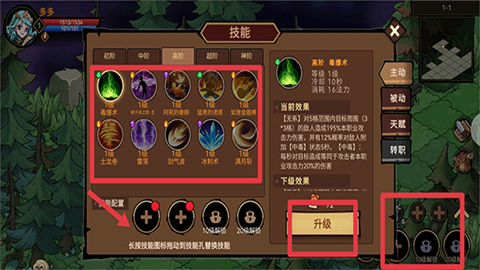 5、于游戏界面的右下角,能够携带多种技能。技能解锁之后,可将其配置至技能栏里,而且还能够对技能进行升级,以此来提升属性。