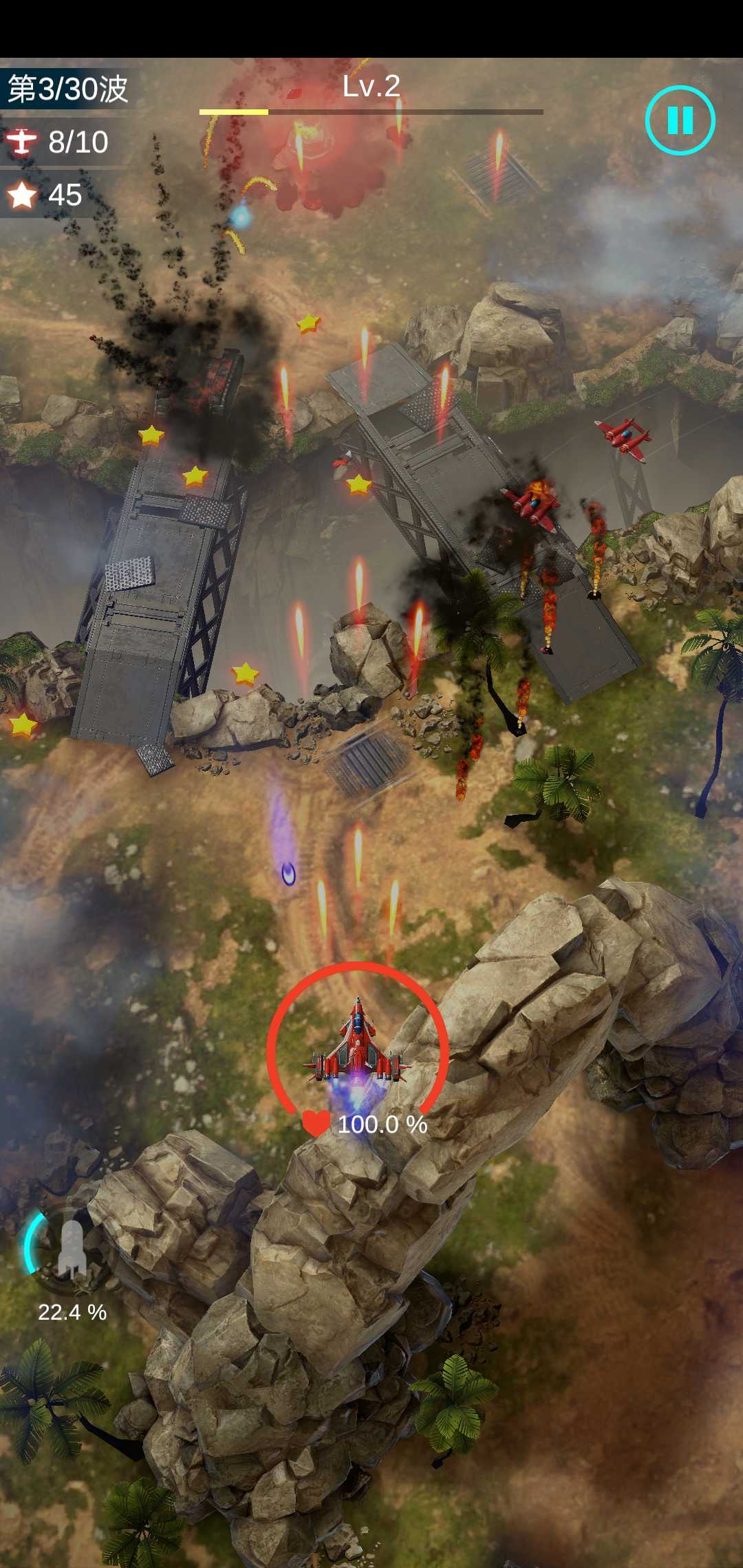 无双战机,一款经典的空中休闲射击游戏,凭借惊艳的3D画面、震撼的战斗特效,以及多样独特的BOSS与武器,声名远扬。它将为你带来前所未有的刺激游戏感受,使你沉浸于激烈战斗。在这里,你能够自行组合不同飞机的能力,更巧妙地运用这些能力投入战斗,解锁各式各样的战斗技能,从而尽情享受飞行射击的乐趣。