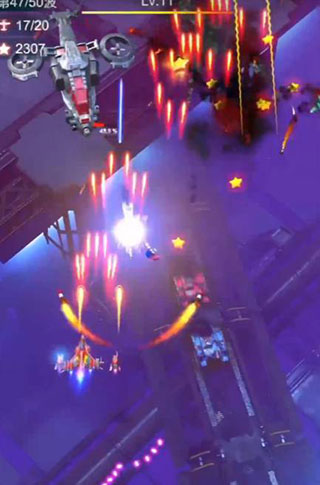 3、在战斗过程中,玩家需操控战机灵活地左闪右避,注重走位,以此躲避敌方战机的弹幕攻击。