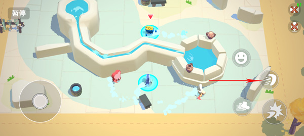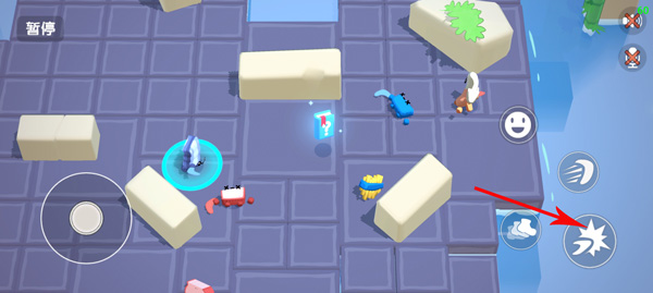 1、当进入游戏后,通过滑动左下角的摇杆来操控角色移动。