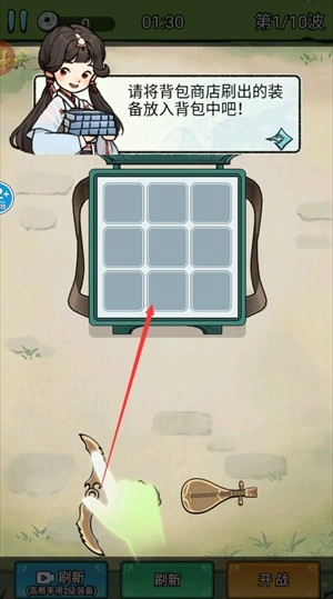 1、在战斗开始前,需挑选装备并放入背包以便后续使用。