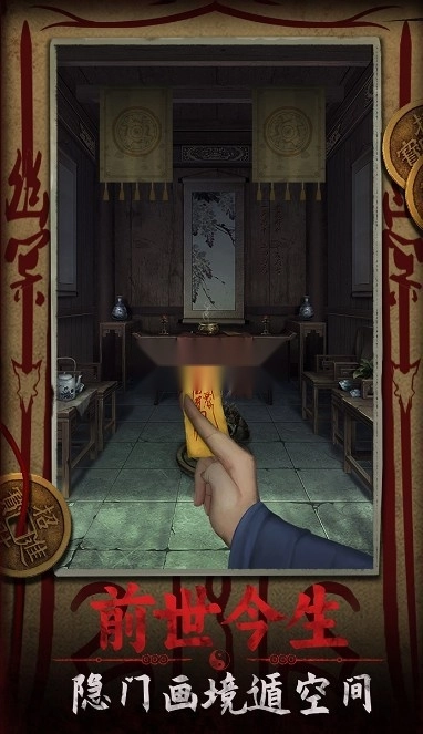 十、接下来,手持青花瓷球前往门口,把它放置在左边石狮子的爪子下方,随后获取钥匙。用这把钥匙打开上一步对弈后那幅被烧毁的画后面的柜子,从中得到【正屋的钥匙】以及一幅画,后续会用到它们。
