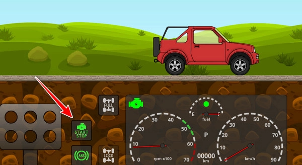 8、轻点最左侧的引擎图标,随即能听到汽车启动的声响,稍作等待,当图标亮起,便表明点火已然成功。