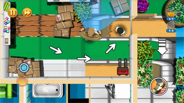 神偷鲍勃2最新版是一款非常经典的小偷模拟类游戏,也是该系列的第二代作品。游戏讲述的是小偷鲍勃在一位神秘男子的帮助之下成功越狱,而作为代价,鲍勃需要在该男子的手底下做事。所做的事情也很简单,属于专业对口那种,鲍勃需要潜入各种各样的房子里面,然后通过自己超高的偷窃技术,在保安的眼皮子底下成功将我们所需要的物品拿出。游戏采用的是上帝视角,也就是说我们眼前出现的会是房子的整个平面图,而我们就需要操控着鲍勃在这个平面图当中完成我们的任务。此外神偷鲍勃2这款游戏内拥有多个关卡,每个关卡的难度都是不一样的,不过随着关卡的增加难度也是会递增的,所以越后面就越考验玩家用户的反应能力。如果你觉得你可以的话,那就赶紧来玩玩吧!