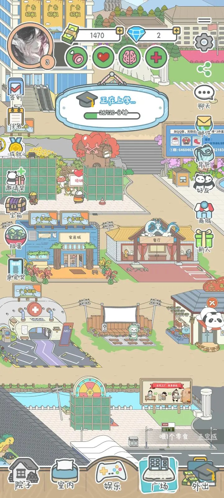 ②左下角的美容院可以改变宠物的样貌和性别,美容院旁边的电影广场可以看广告拿钻石