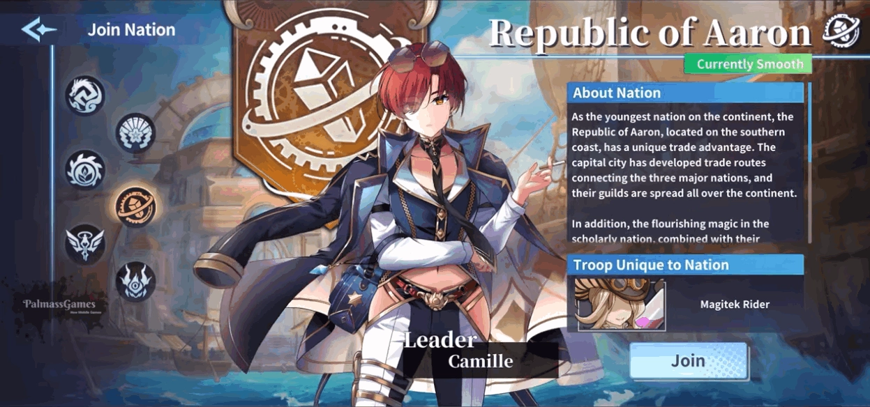 作为大陆上最年轻的国家,位处南方沿海的亚伦联邦有著得天独厚的贸易优势,其首都发展的贸易路线连通三大国,各财团旗下的商会分部遍布大陆各地。除此之外,亚伦联邦本土的科研风气发达,近代魔法发展蓬勃,融以科学,诞生了跨世代的崭新魔导科技。