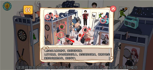 游戏玩法也很简单,采用的是闯关制度,每一关当中都有着任务需求,并且还有着各种丰富的道具元素在内,而我们要做的呢就是通过移动场景当中的道具来解锁各种线索,从而达到过关的要求,完成挑战。需要注意的是,除了任务之外,游戏内还有着各种爆笑雷人的梗在内,随便点击即可触发,玩起来特别的有意思哦。