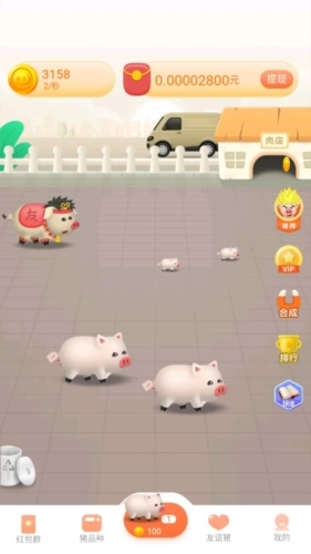 宝乐养猪场是一款非常有意思的模拟经营游戏,这一次你将会成为养猪场的老板,在这里你不但可以体验到养猪的快乐,还可以一边养殖,一边赚取到许多的红包奖励,轻轻松松获得许多的零花钱!在宝乐养猪场游戏里玩家将经营自己的养猪场,进行猪只的饲养、喂食、疾病治疗等,通过合理的管理和策略,培育出健康、多产的猪只,并参与挑战和比赛,赢取丰厚的红包奖励!