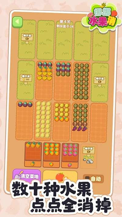 2、数十种水果,一键全部消除。