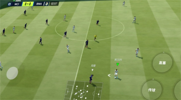 2. 推射:若要进行精确射门,只需向下划动射门键就能完成推射动作。
