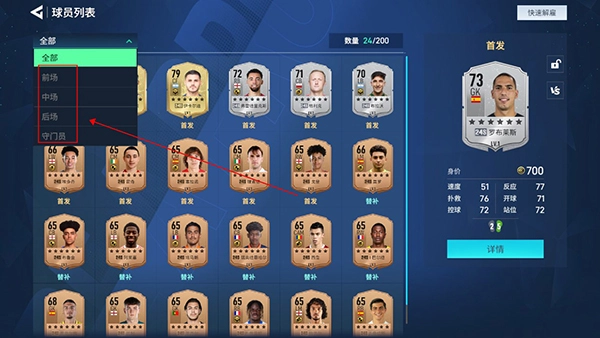 1、游戏中的球员分为前场、中场、后场以及守门员这四种类型,每种类型的球员都有着不同的作用,玩家能够自由进行搭配。