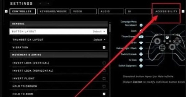 2. 进入设置页面,选择右上角的“ACCESSIBILITY”。