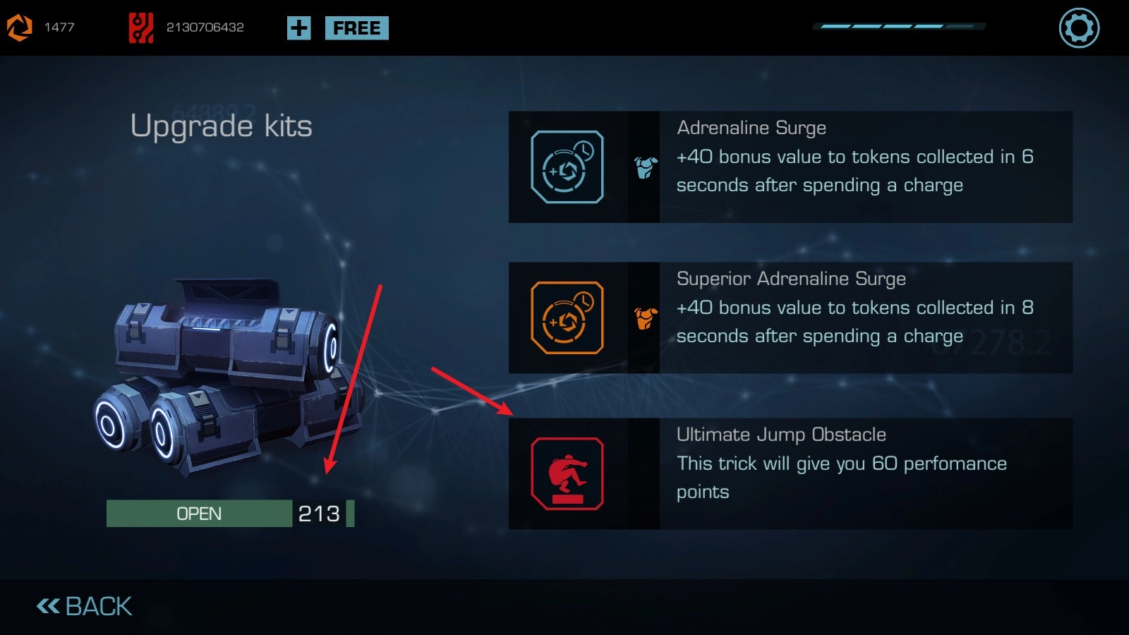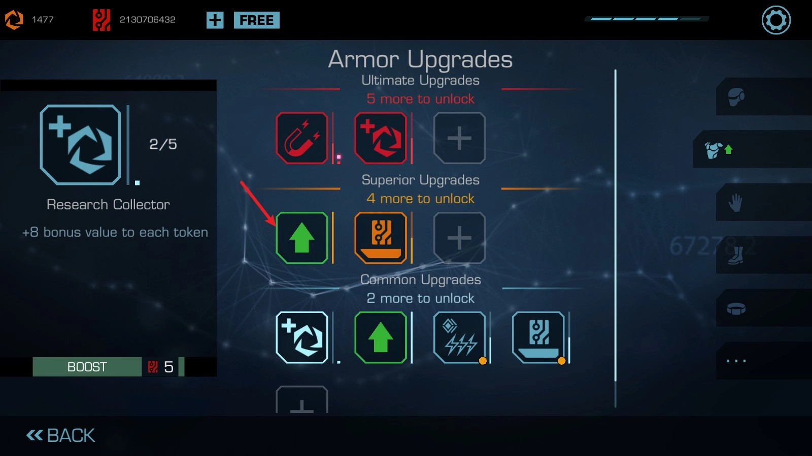 4、进入后,我们便可装备刚刚开出的部件,并且还能花费货币来进行升级。