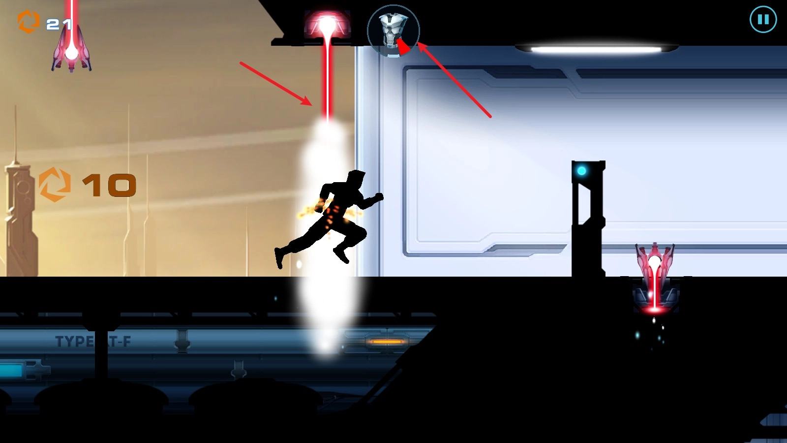 4、只需向右滑动屏幕,就能让人物加速,在此状态下进行跳跃,人物跳跃的距离也会更远。
