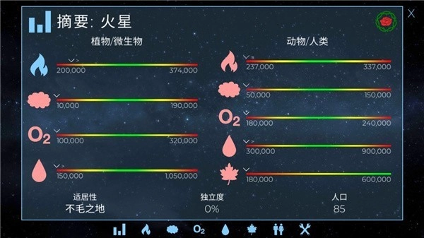 5、最后,为使行星获得更优发展,玩家需持续钻研各类设施,涵盖温度、氧气、水等方面。