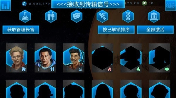 4、依据行星的实际状况,我们能够获取一些长官,从而更有效地开展经营活动。