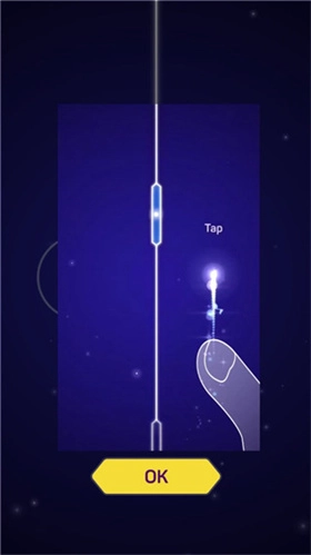 1、感受音乐的节奏点,轻击屏幕操作光点的移动轨迹。踩准节奏点, 努力获得更多的分数和钻石吧。