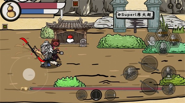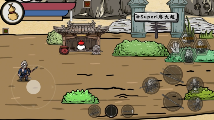 4、右侧各个按键的作用各不相同,像躲闪、重击、跳跃等操作都由它们负责。
